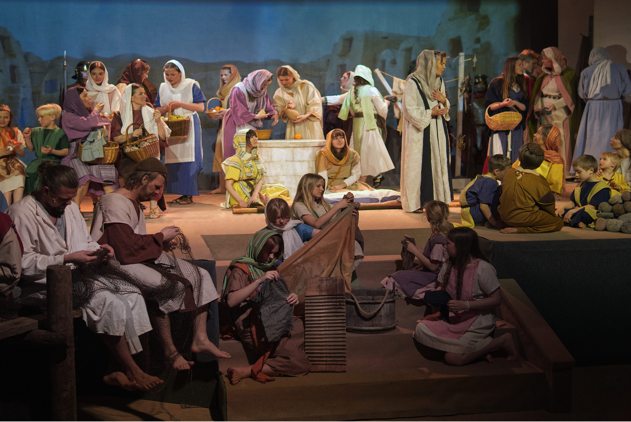 Barnen får bland annat vifta med palmblad när Jesus rider in i Jerusalem och i år fick de hjälpa till att kasta ut nät på Genesarets sjö.